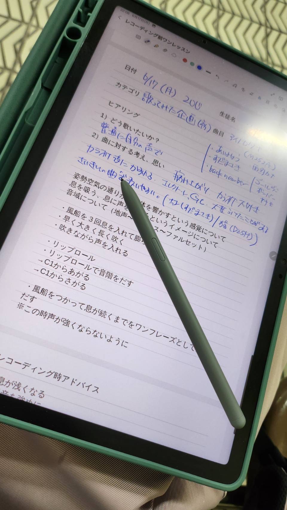 曲に対する思いや考え、どのように歌いたいか、歌う時の悩みなど、一人ひとり個別のヒアリングシートを作成します。その人に合ったレッスンを提供するために、カウンセリングを大切にさせていただいております。
