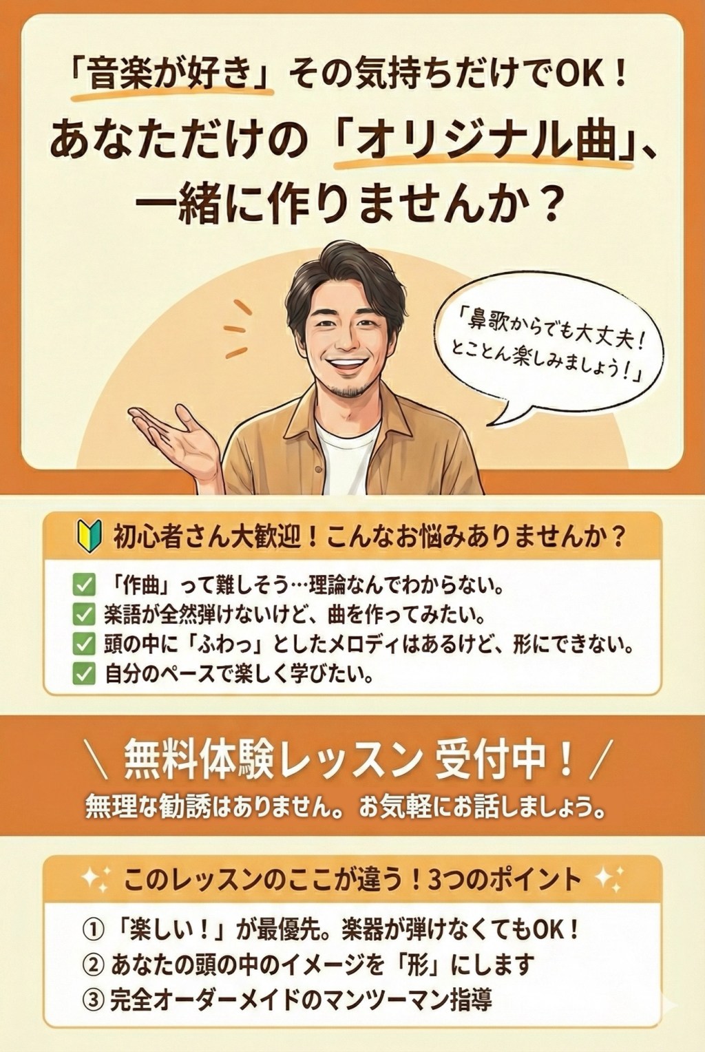 まずは無料体験レッスンで、作曲の楽しさを体感してください!