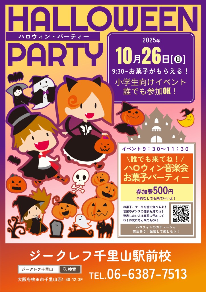 千里山駅前スタジオで、ハロウィンパーティーを開催します♪