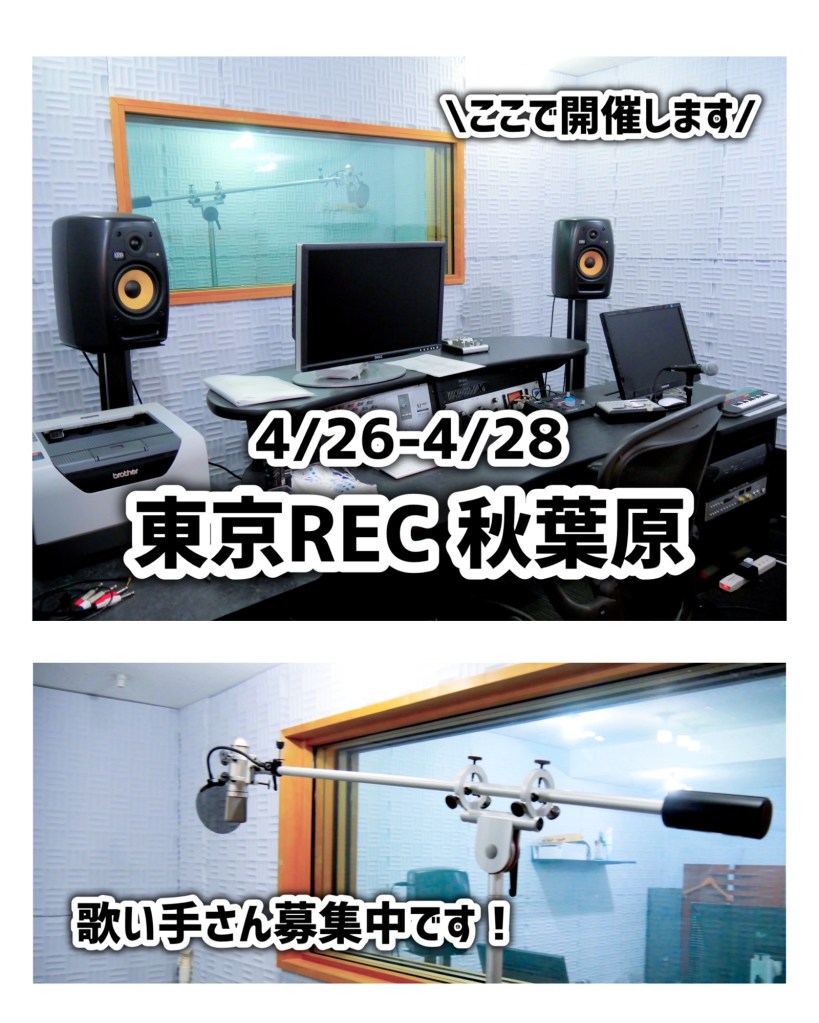 ・完全な防音室ではなく、音楽教室の部屋を貸し切って録音しますが、プロ仕様の録音機材を用意しております!